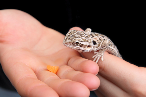 Make sure any food item offered is finely chopped into small pieces. Never offer any food that is larger than the distance between the bearded dragon’s eyes as a rule of thumb.